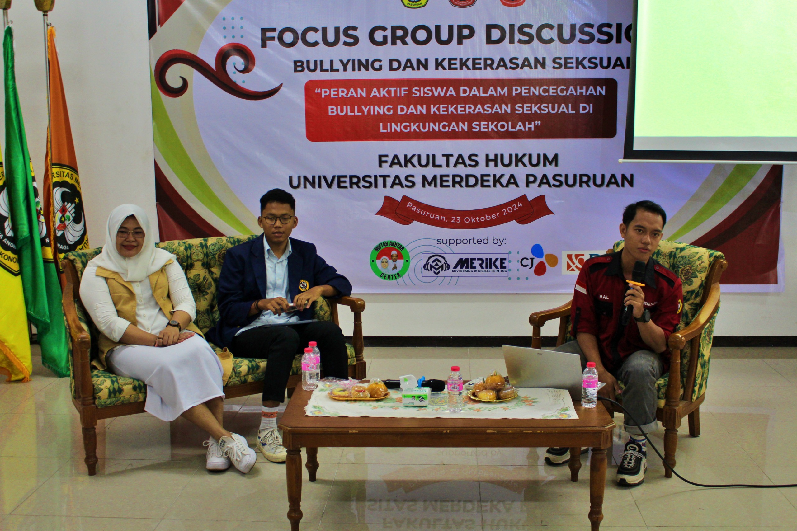 PASURUAN, titiksatu.com – Kekerasan dan bullying terhadap anak di wilayah Kabupaten/Kota Pasuruan masih cukup tinggi, oleh sebab itu Universitas Merdeka Pasuruan bersama BKBH FH menggelar Focus Grup Diskusion (FGD) yang dilakukan di Gedung Kuliah Bersama, Rabu (23/10/2024) pagi.