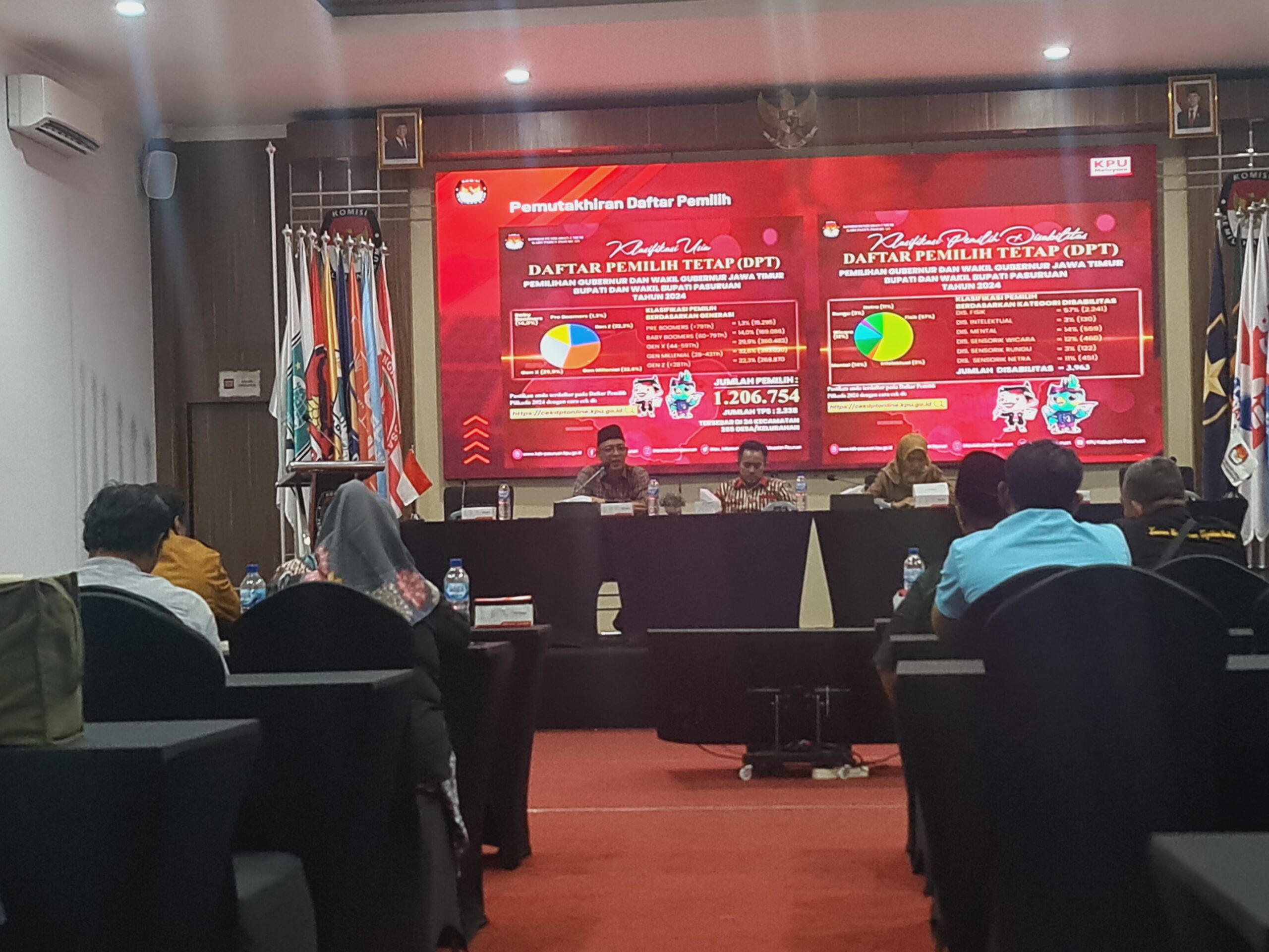 PASURUAN, titiksatu.com – Komisi Pemilihan Umum (KPU) menggelar Focus Grup Discution (FGD) yang dilakukan di aula gedung KPU, di Kelurahan Pogar, Kecamatan Bangil, Kabupaten Pasuruan, Rabu (26/2/2025) dalam rangka sebagai evaluasi kerja KPU sebagai penyelenggara pemilu dan pileg tahun 2024.