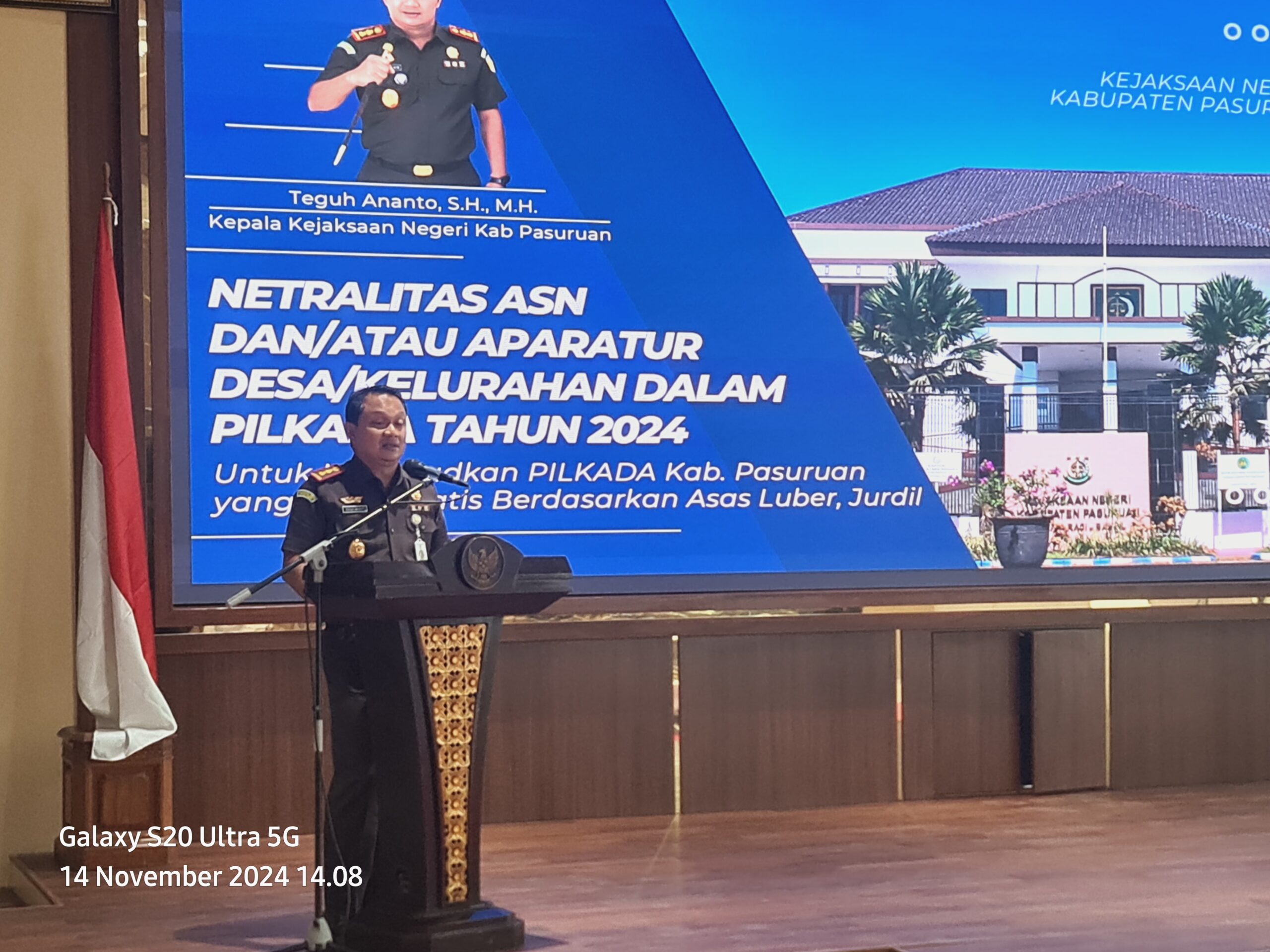 Kepala Kejaksaan Negeri (Kajari) Kabupaten Pasuruan, Teguh Ananto, mengingatkan seluruh kepala desa (kades) di Kabupaten Pasuruan agar menjaga netralitas mereka dalam Pemilihan Bupati (Pilbup) yang akan datang. Pernyataan ini disampaikan seiring dengan meningkatnya kekhawatiran akan potensi penyalahgunaan jabatan oleh para kades untuk mempengaruhi proses demokrasi.