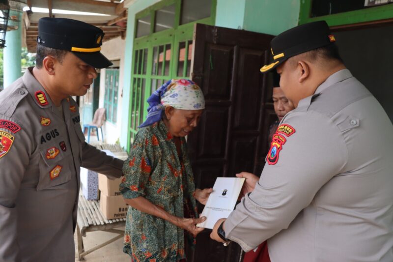 Kapolres Pasuruan bersama rombongan Sat Binmas dan Polsek Kejayan meninjau langsung kondisi Dusun Krajan yang porak-poranda dihajar hujan deras dan angin kencang. Bantuan langsung diserahkan kepada warga terdampak, salah satunya Ibu Aisah (63), seorang wiraswasta yang rumahnya roboh total.