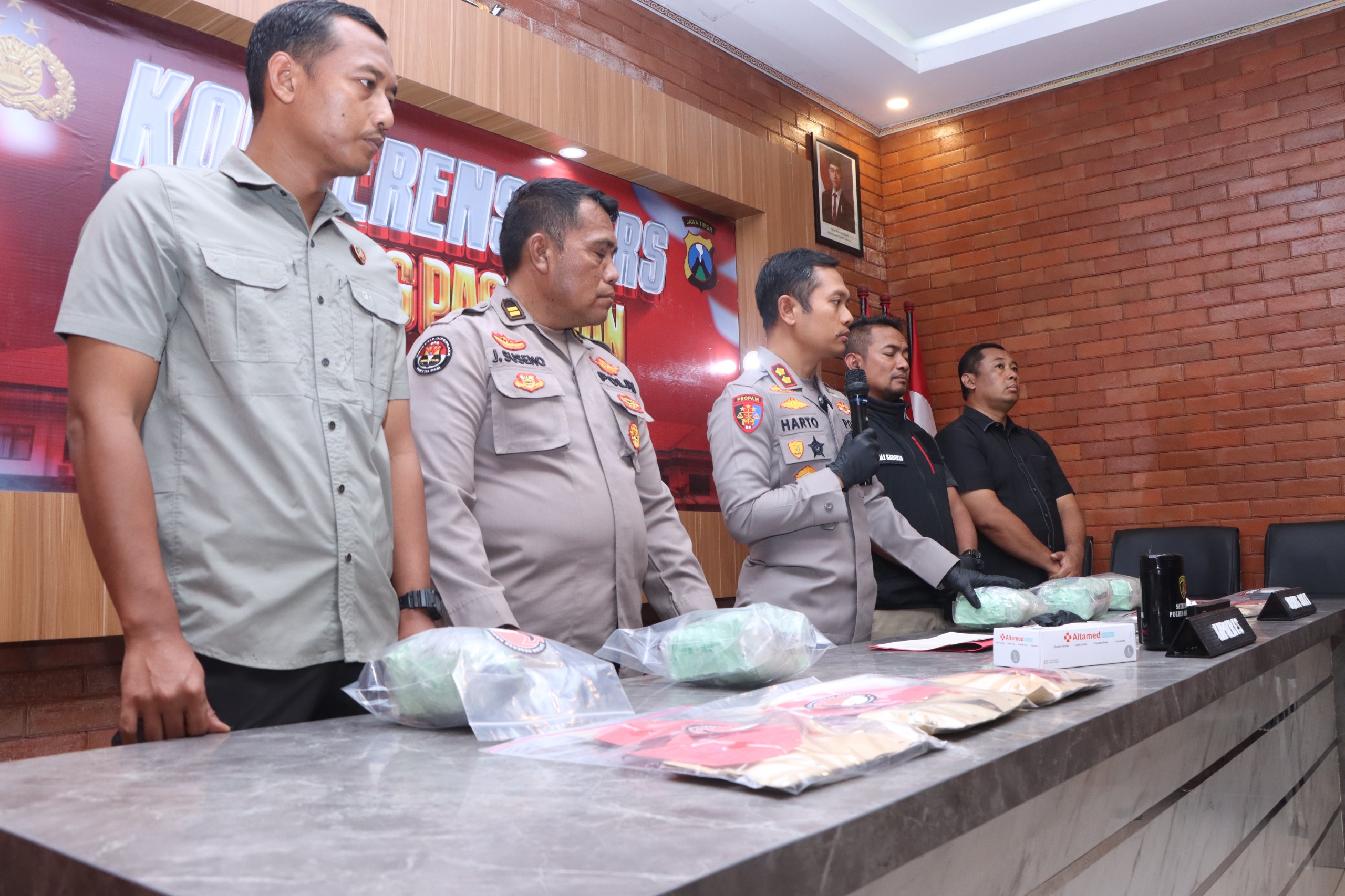 “Dari 25 kasus yang kami bongkar, jumlah tersangkanya mencapai 46 orang, terdiri atas 45 laki-laki dan satu perempuan. Barang bukti yang kami amankan mayoritas adalah sabu seberat lima kilogram lebih,” tegas AKBP Harto saat memimpin press release di Balai Warta Polres Pasuruan, Selasa (27/1/2026).