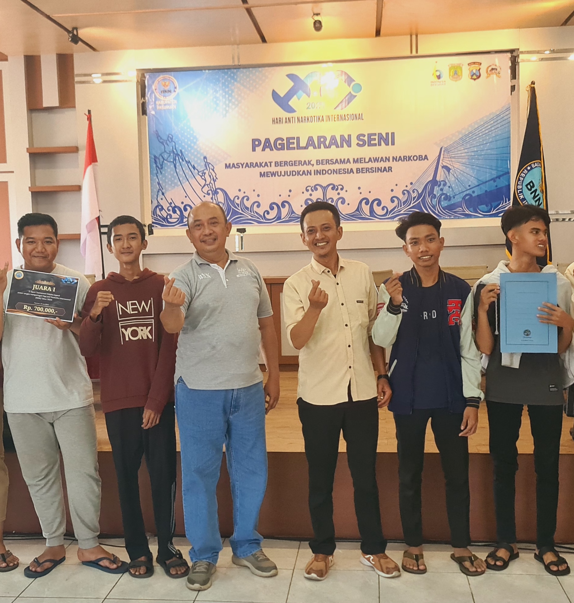 Ditempat yang sama AKBP Erlang Dwi Permata, kepala Badan Narkotika Nasional (BNN) Kabupaten Pasuruan mengatakan, acara ini sebagai bentuk dalam memperingati hari narkotika international, sekaligus menempati kantor baru BNN. Panggelaran seni dan Esport merupakan langkah BNN dalam upaya meningkatkan kreatif pemuda saat ini agar mempunyai bakat dan prestasi.