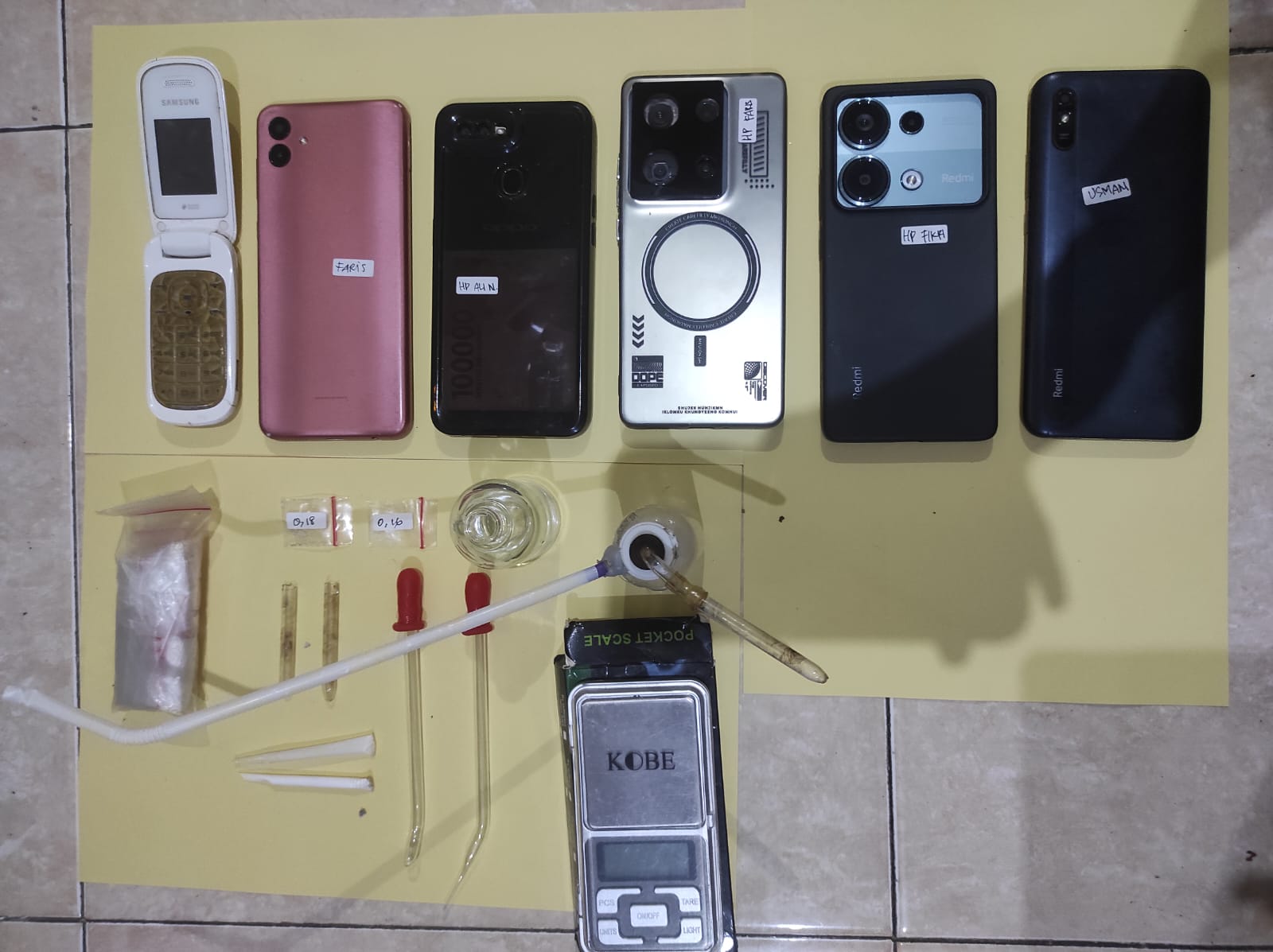 “Saat di lakukan penggeledahan, kami menemukan barang bukti berupa sabu, timbangan digital, bong, dan sejumlah ponsel,” ujar Kapolsek Bangil, Kompol Akhmad Sukiyanto.